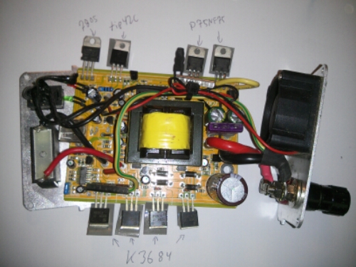Ser ud til stort set alle power halvledere gik til. Lidt underligt. Opbygningen er meget standard med en ka7300b som switching motor.