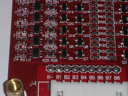 Celle printet i BMS kan klare op til 16 LiIon celler. Det er lykkedes at redde ialt 10 rækker af 4 celler, det bliver ialt til 40 volt. Batteri pakken kan altså nu yde 800 Wh = 0,8 kWh.