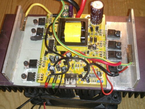 Der har været et tidligere indlæg om denne inverter efterfølgende har jeg fundet nogle MOSFETs der kunne bruges til at reparere den med i skrottede atx strømforsyninger. De nye MOSFETs kan ikke klare helt den samme strøm, men rigeligt til de 300 watt inverter er dimensioneret til.