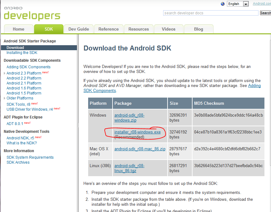 installation af eclipse og googles android SDK