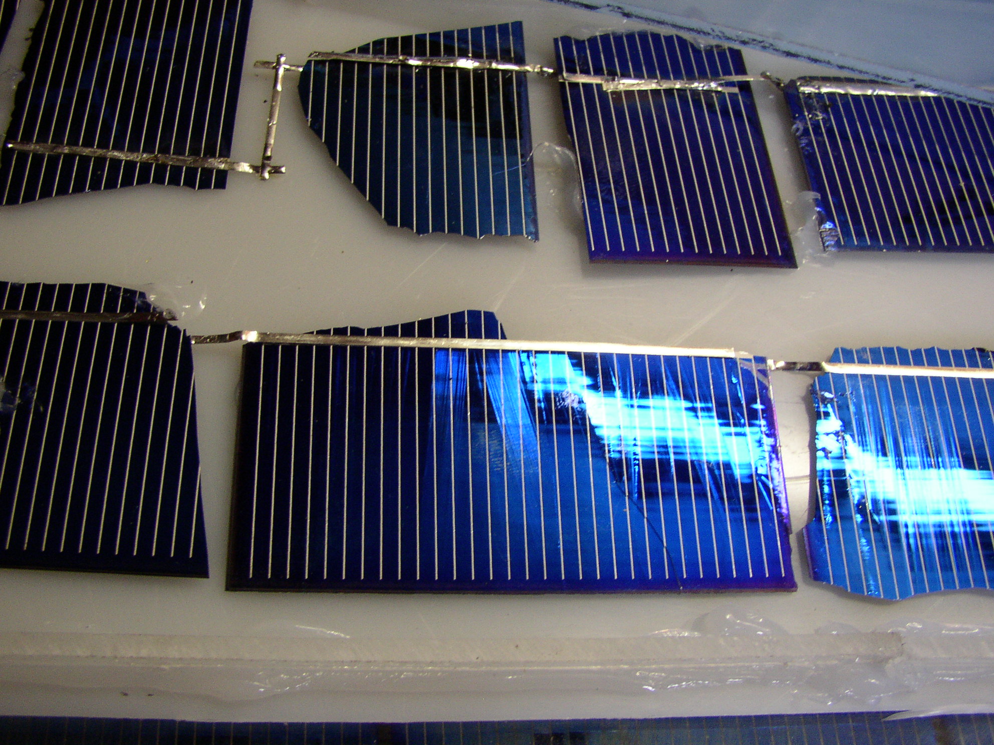 Når man selv bygger solpaneler sker det jævnligt at man knækker en celle. Det sker også i solar industrien, de har bare muligheden for at skære solcellerne pænt ud, og laver så mindrepaneler af større knækkede celler.