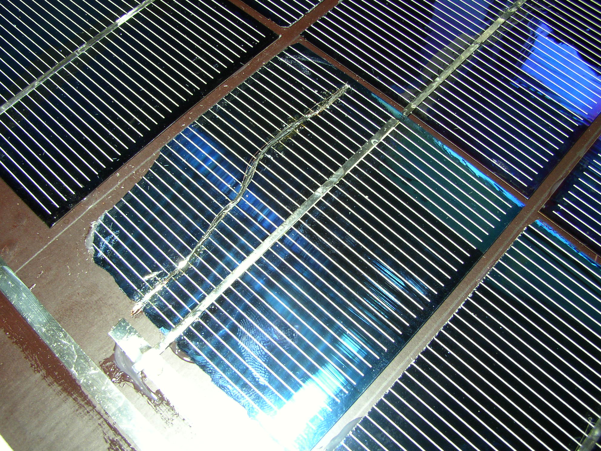 Hvis solceller derimod er revnede så en trediedel af cellen er brækket af, ja så yder den kun to trediedel i strømstyrke og den knækkede celle bliver det svageste led i kæden, og bestemmer det samlede solpanels ydelse.