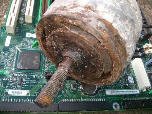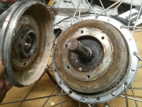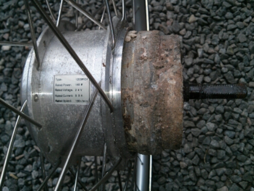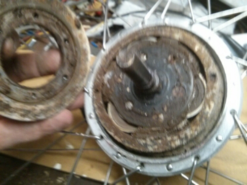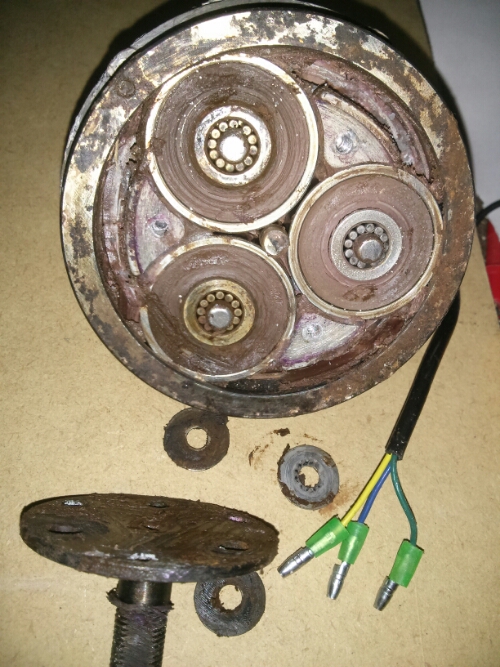 Indeni hub motoren er der overraskende meget rust. Hvor det vand er kommet ind er lidt en gåde.