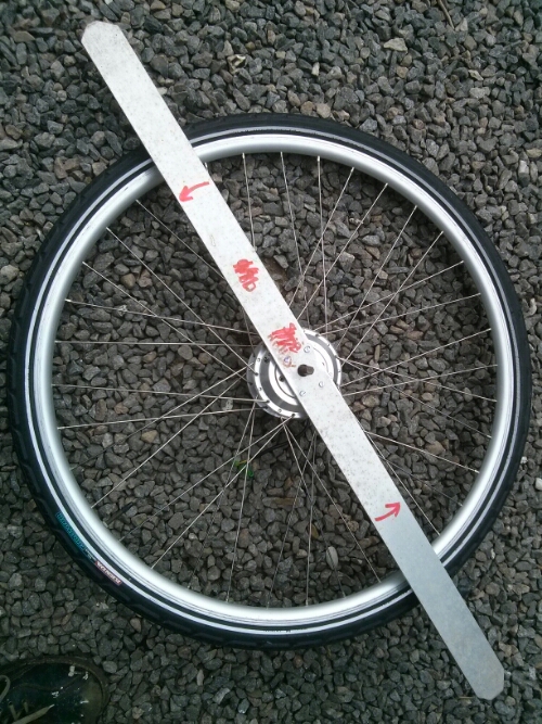 For at adskille en hub motor på en elcykel skal der laves et simpelt værktøj, og der vrides i pilenes retning som ses på billedet.